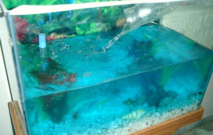 Как правило, при использовании чистой воды в аквариуме оставляют 2/3 старой. Но только при условии, что это отстоявшаяся вода. То есть, очищенная по всем правилам. Если на очистку нет времени и вода не отстоялась, ее доливают в аквариум на 1/5 часть.