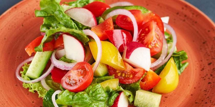 Для этого блюда понадобятся свежие овощи, лучше – выращенные самостоятельно, не содержащие химикатов и пестицидов. Готовится полезное блюдо просто и быстро, находясь на безуглеводной диете, его можно есть с яйцом, сваренным вкрутую. К заявленным ингредиентам салата разрешено добавлять мелко рубленную свежую зелень укропа, петрушки либо кинзу, если вы ее любите.