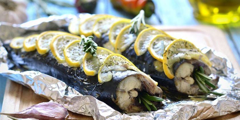 Рыба, приготовленная по этому рецепту, получается очень сытной и питательной. Сметана делает мякоть более нежной, мягкой, а лимон придает неповторимый аромат. По желанию в маринад можно добавить измельченный укроп. Запеченную скумбрию нужно готовить без добавления жиров, но если вы боитесь, что тушка пристанет к противню, смажьте его поверхность оливковым маслом.