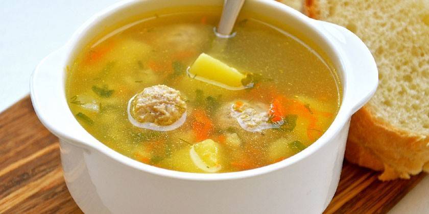 - Скатайте из фарша фрикадельки, добавьте в суп, варите около 7 минут.