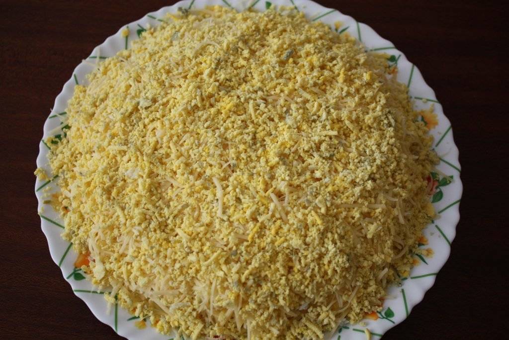 Ингредиенты: 400 г куриного мяса, три яйца, 250 г ананаса, 100 г твердого сыра, 25 г грецких орешков, 200 мл обезжиренного майонеза.