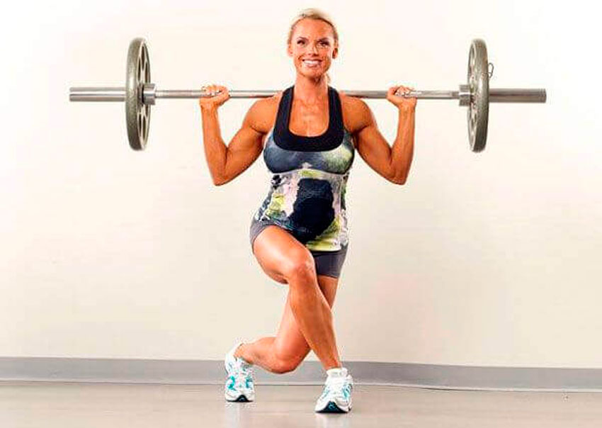 Можно выполнять любые виды выпадов со штангой на плечах, при условии здорового позвоночника и тренированных мышц спины и живота. Такой вариант отягощения рекомендуется более опытным спортсменам, которые владеют всеми мышцами и готовы добавить нагрузку.