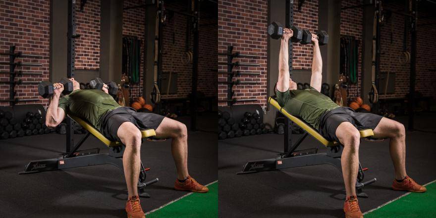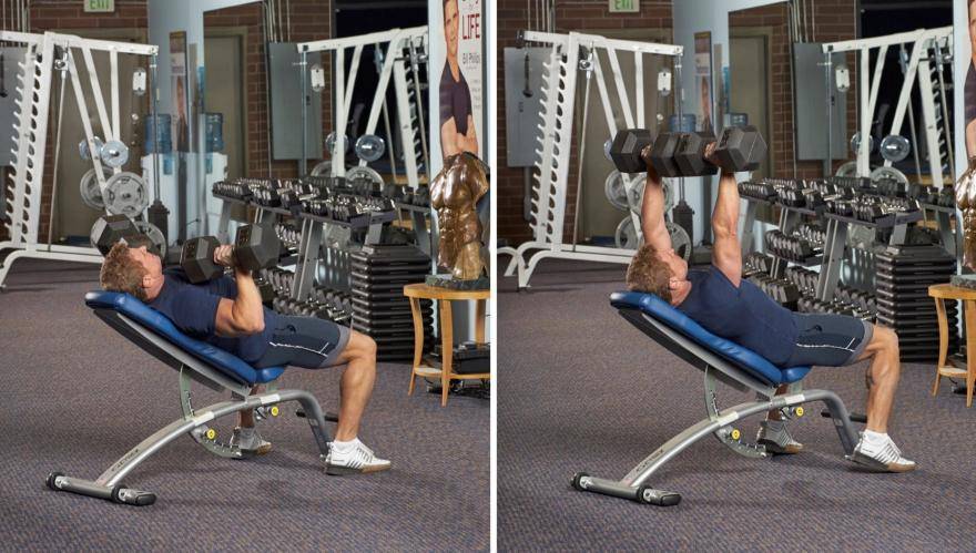 Наклонный жим гантелей лежа