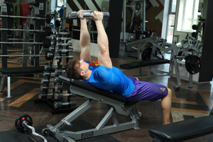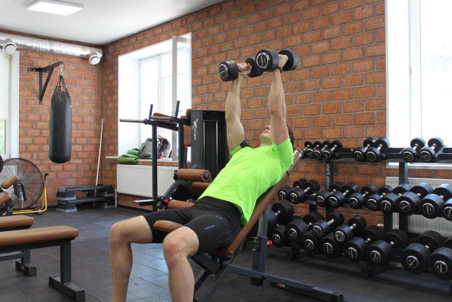 Техника: жим гантелей на скамье с наклоном вверх