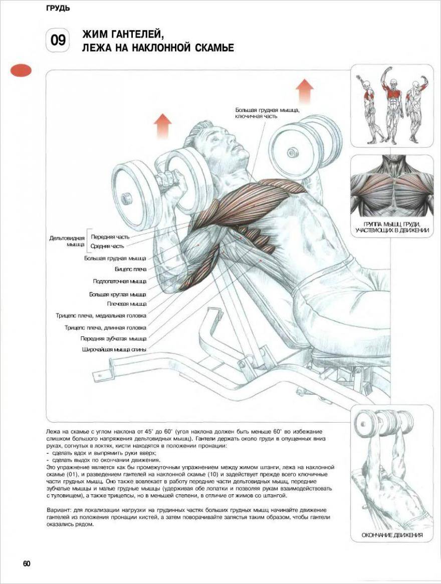 Жим гантелей на скамье с наклоном вверх — мышцы