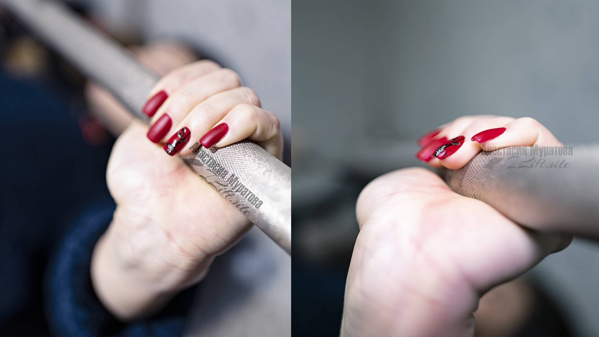 Самый неудачный и небезопасный вариант. В таком варианте штанга, по сути, просто лежит в ладони, никак не зафиксированная.