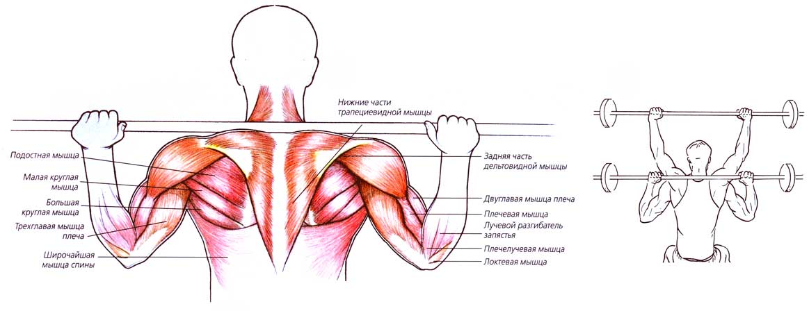 В зависимости от широты хвата, прокачиваются отдельные виды мышц. Например, широким хватом пользуются те, кто укрепляет дельтоиды, а узким хватом – кто качает трицепсы