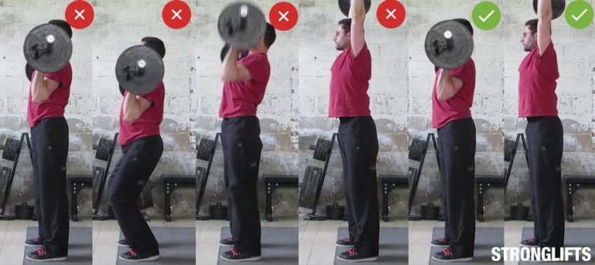 Наряду с жимом штанги лежа, становой тягой и приседами со штангой на плечах, армейский жим является тем упражнением, которое может не только поспособствовать всестороннему развитию атлета, но и нанести непоправимый вред здоровью, а на восстановление от полученной травмы может уйти не один месяц. Поэтому если Вы узнали себя в одном из нижеописанных пунктов, следует пересмотреть свою технику армейского жима, начиная с самых азов, а еще лучше – не повторять своих ошибок и обратиться за помощью к опытному высококвалифицированному инструктору.