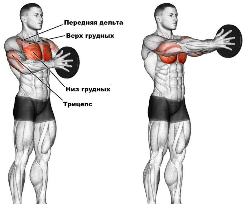 - Основные мышцы: большая грудная мышца (акцент на внутреннюю область).