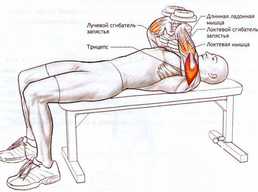 Французский жим с гантелями: вариации стоя, сидя и лежа